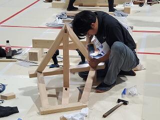 競技課題は、木造建築の小屋組みを製作する内容で、2日間・合計12時間の制限時間内に、正確な墨付けと木材加工の技術を駆使して高精度の作品を完成させることが求められます。