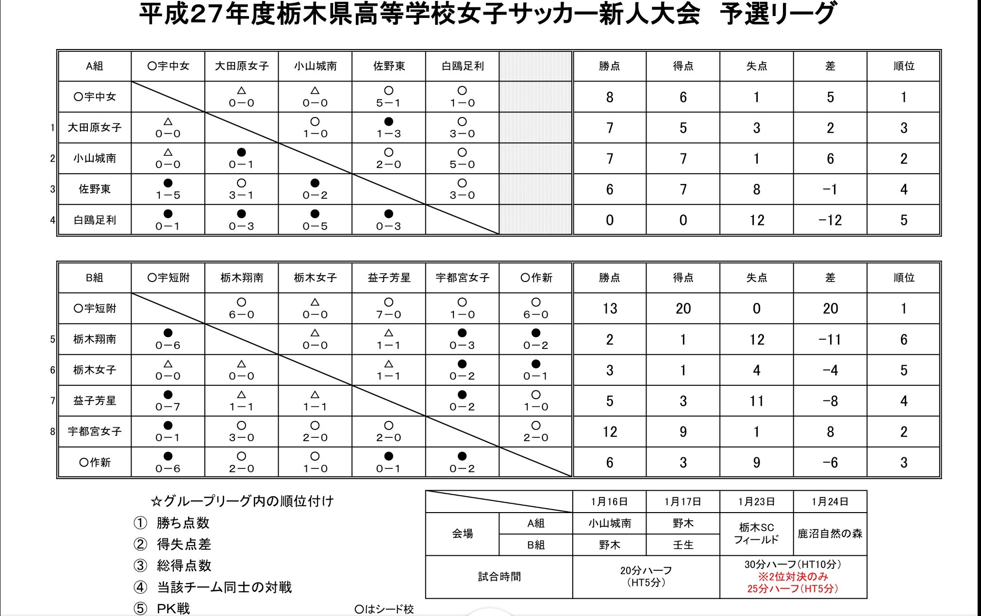 H27 県高校女子サッカー大会 1月16日、17日、23日、24日