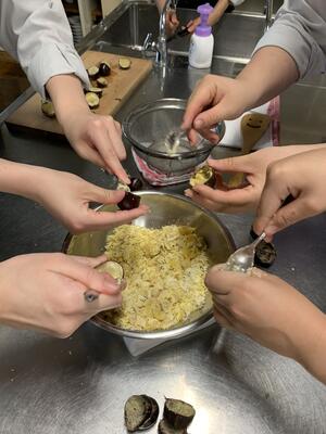 〖マナー研究〗 投稿日時 : 10/06 学習指導部 3年生が履修しているマナー研究では 季節の手仕事として、栗を扱いました。 生徒は栗の中身を取り出すところから行い、どの班もおいしそうなペーストを作ることができました。 Tweet