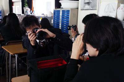 美術表現の一つである写真表現は今特に盛り上がっている分野で、生徒も初めて一眼レフカメラを