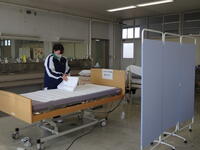 令和7年10月10日(金)3・4時限目 3年生活支援技術の授業では、ベッドメイキングの実技試験を行いました。制限時間7分間、一人でマットレスパッド、シーツ、枕カバーを美しく完成させる試験です。1回で合格した生徒もいれば、再試験を受けなければならない生徒もいます。しかし、今日まで、生徒は一人ひとり、一生懸命に自己練習に励んでいました。その姿は、とても素晴らしかったです!再試験の生徒は、次回の時までしっかり練習しましょう。また、合格した生徒はこの技術をしっかり身に付け、介護実習に生かしていけるようにしましょう。今日は、とても緊張したと思いますが、お疲れ様でした。