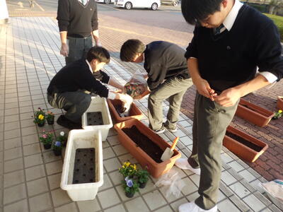 昨日の放課後、美化委員の皆さんによるプランターの花苗の植え替え作業が行われました。季節の移ろいに合わせて、校舎前に新たに迎え入れられたのは、パンジーとビオラ。どちらも可憐でありながら、凛とした佇まいを持つ花々です。