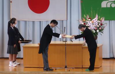 午前10時からの式典においては、生徒会を中心とした生徒達の主体的な進行のもと、厳粛な中にもアットホームさを感じさせる「おにし」らしい式典となりました。