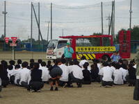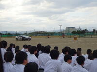 今年度は、スタント会社「スーパードライバーズ」の皆さんを講師にお迎えし、小山警察署交通総務課の大島様にもご協力いただきました。グラウンドでは、交通事故を再現するスケアード・ストレイト方式によるスタント実演が行われ、実際の事故の怖さや安全確認の大切さを肌で感じることができました。