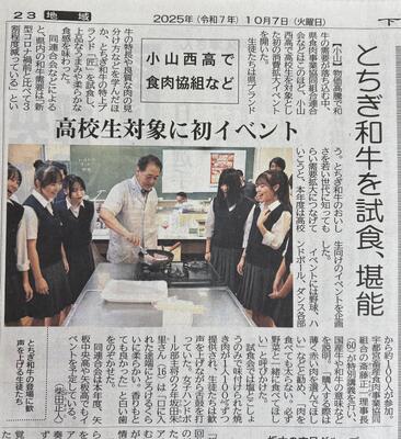 A special event was held at our school to help young people learn about the delicious taste of Tochigi Wagyu beef and to support its wider use.