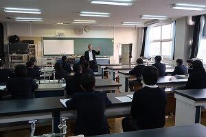 生徒たちは、校長先生の話に真剣な表情で耳を傾け、講座に集中して取り組んでいました。