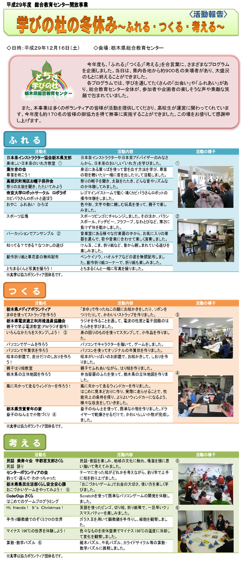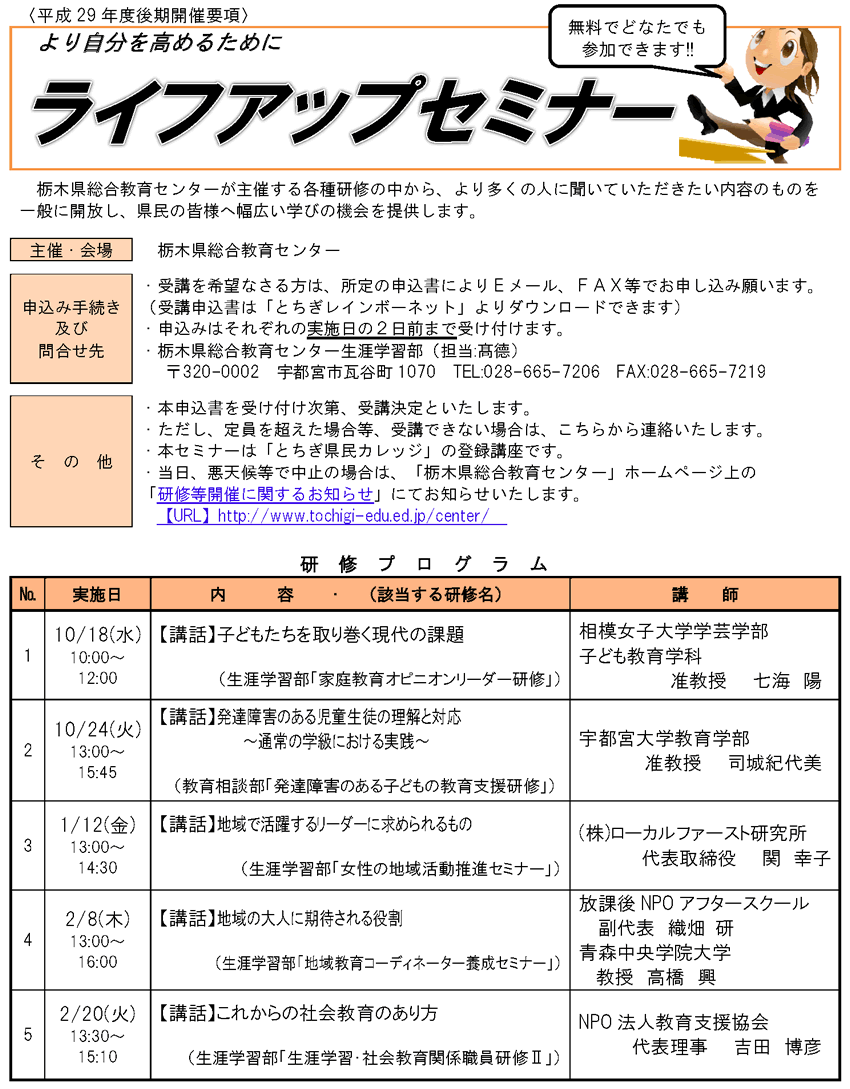 平成29年度 栃木県総合教育センター生涯学習部事業報告