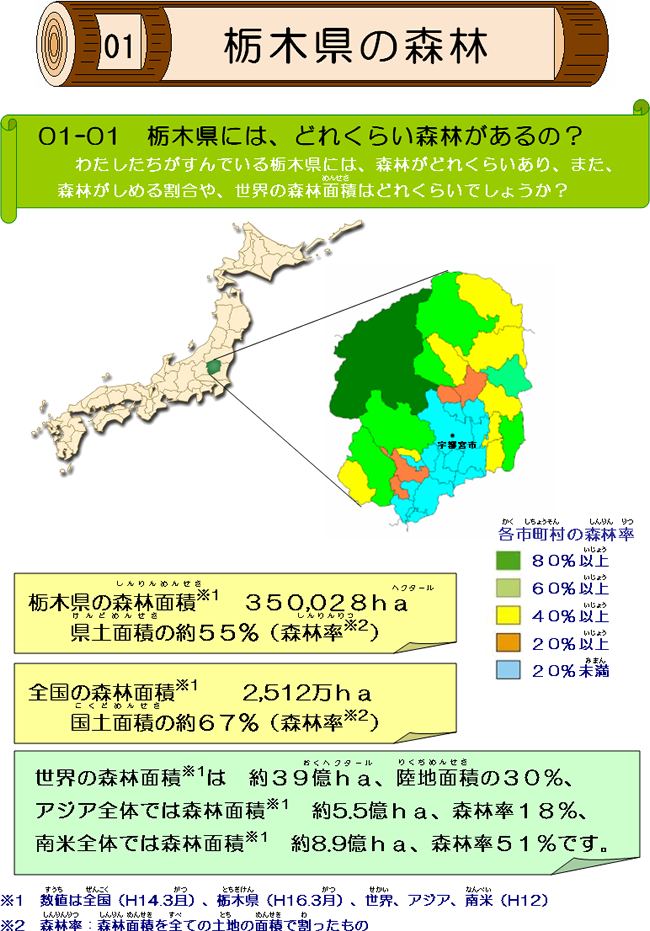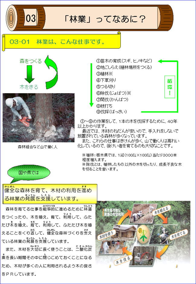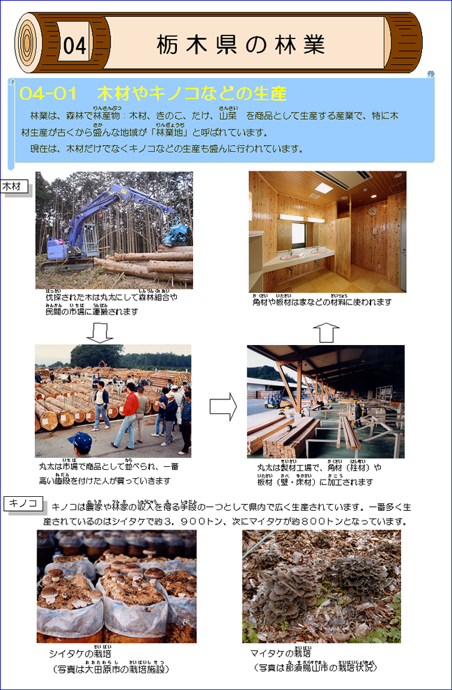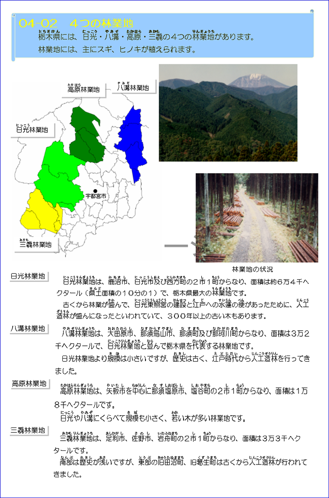 栃木県の森林やそのはたらき、大切さなどについてまとめたものです。小学生の教材としてご利用ください。 |