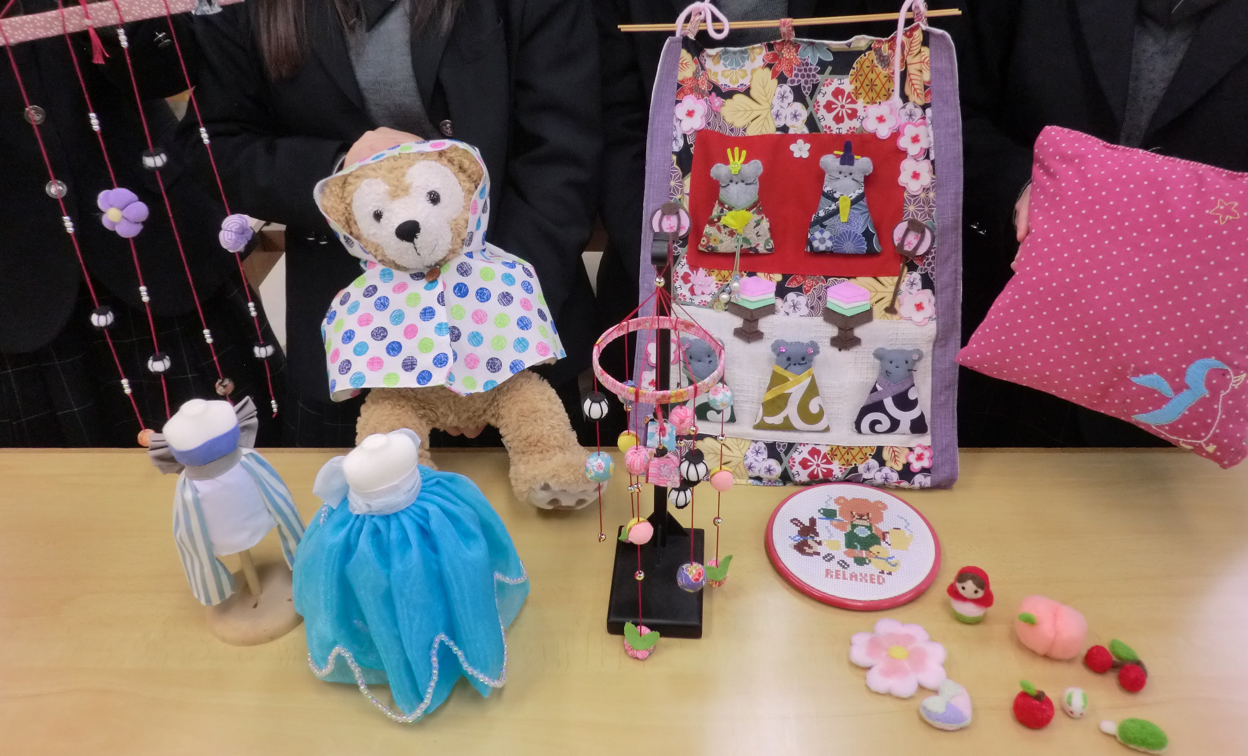 春から秋までは作品を製作し、栃木県総合文化センターで催される「高校生手芸作品展」に展示します。他校の作品を見学することにより自分たちももっと上手に作れるようになりたいという気持ちにもなり、良い勉強になりました。