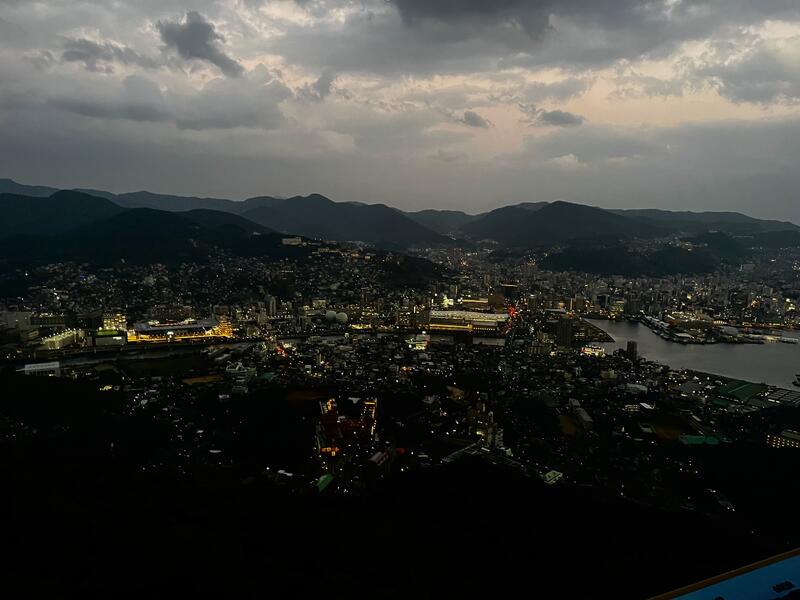 日の入りから夕方にかけて、夜景を見ました!雲の合間から見える夕日の光がとても幻想的で綺麗でした✨展望台では長崎市が一望でき感動しました!!
