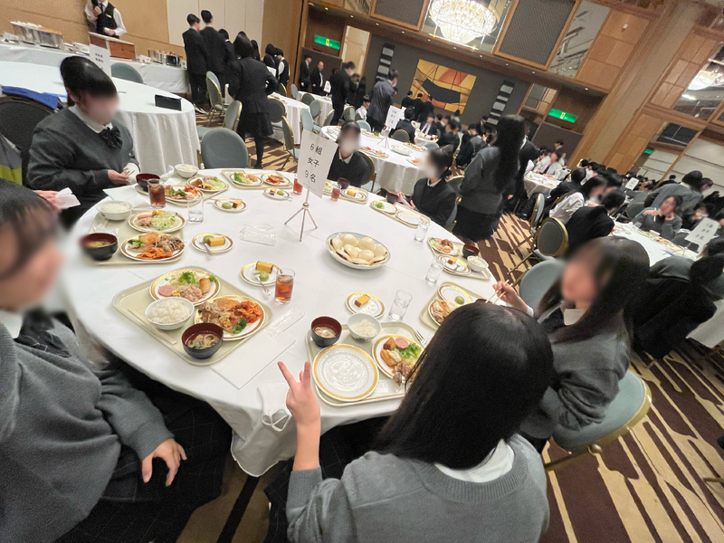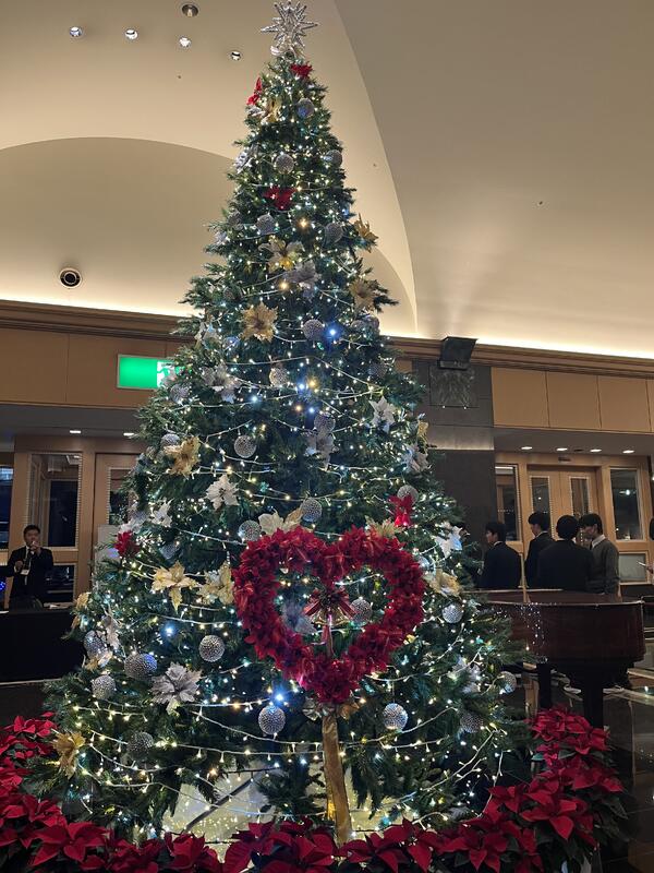 ホテルに着いてすぐ大きなクリスマスツリーがあり写真をたくさん撮っていました。夕食はビュッフェ形式でみんなでワイワイ食べたのが楽しかったです❣️