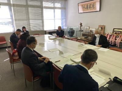 今回は本校の阿久津校長を含む4名の委員の皆様と栃木県教育委員会事務局職員の方1名をお招きし、本校職員5名を交えての会合となりました。