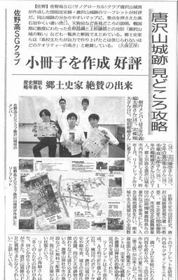 【高校】SGクラブ唐沢山城班が新聞で紹介されました