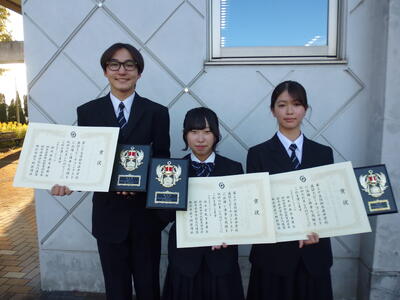 11月11日(火)に宇都宮市田原コミュニティプラザにおいて第35回栃木県中学校英語スピーチコンテストが行われ、Ⅰ部に3年生の高橋 凛帆さん、和田 十唯さん、Ⅱ部(バイリンガル)に2年生のラウクス シェイド エヴァンさんが参加しました。