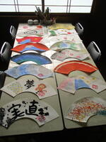 2組は、嵯峨嵐山を散策し、扇子の絵付け体験を行いました。