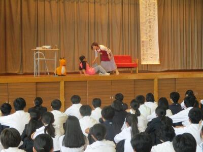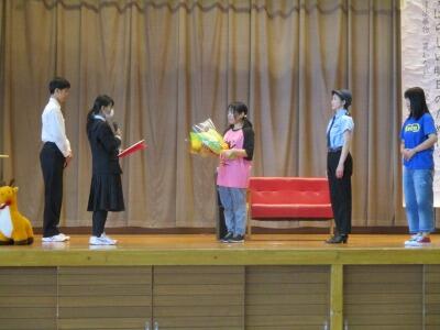劇団三十六計の皆様にご来校いただき、体育館で薬物乱用防止の啓発をテーマとした劇「すばらしい明日のために・・・ 違法薬物『買わない』『使わない』『かかわらない』」を鑑賞しました。