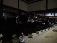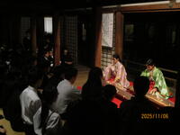 夜には、青蓮院で茶道体験や琴の鑑賞、法話を聞きました。