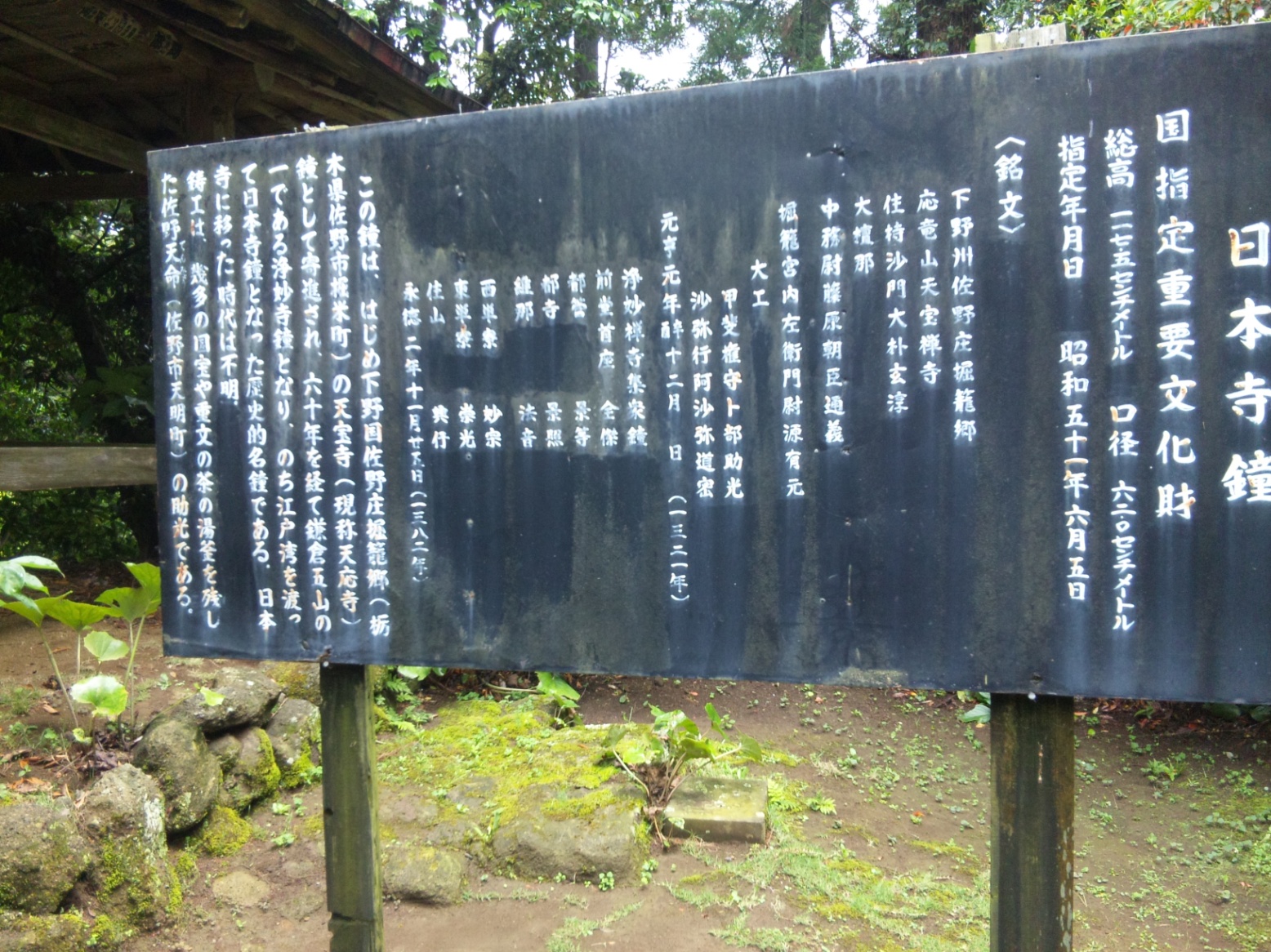 途中日本寺にある、鎌倉時代に天明の名工卜部助光作といわれる「天宝禅寺の鐘」を見ることができました。