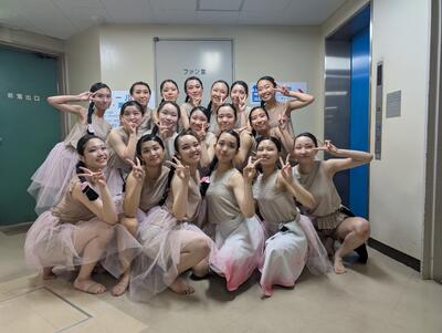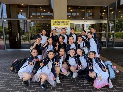 予選番号5番。二日間の予選で初日の早い出番ということで前日入り。4日から神戸入りしました。 体育館練習が音無し20分。場当りは20秒。その後本番で、あっという間の予選でした。翌日,予選二日目の夕方に開会式と結果発表。結果は入選できず予選敗退でしたが全員で協力して踊れました。3年生が1名、2年生が5名、1年生が12名の18名で頑張りました。1・2年生が次へ繋ぎます。