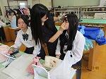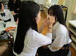 「高校生輝きプロジェクト」として活動する、メイク講師の松﨑さんをお招きして、ファッションショーに向けたメイク講習会を実施しました。