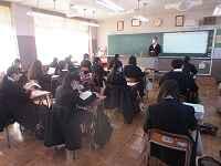 鎌田様より、「精神障害のある人への福祉的支援の実際」というテーマで、精神障害者の支援についてご講話いただきました。来年4月から障害者施設での実習を控える生徒達にとって、とても良い気づきや学びに繋がったと思います。