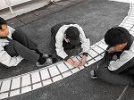 教員用の駐車場の一角に線路を敷き、周回できるように設置しました。前日から線路の調整に苦労しましたが当日には無事に動き出しました。多くの方々に乗っていただけました。