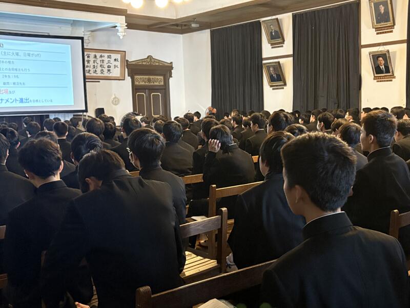 生徒会主催によるもので、各部の部長や団体の代表者から簡単な説明をありました。