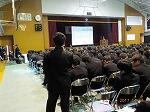 生徒会長よりお礼の言葉があり、花束贈呈をしました。
