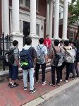 ハーバード大付近にある建物の一室にて、大学2年生2人から自己紹介とハーバード大での学びの特長である「リベラルアーツ」についての話を聞きました。その後、2班に分かれて、キャンパスツアーに参加し、ハーバード・ヤードを中心に様々な場所や建物・像についての歴史・逸話を説明していただきました。規模の大きさと同時に大学生たちの説明能力にも圧倒され、明日のワークショップへのモチベーションを高めていました。その後、大学の生協などで土産を中心に買い物を楽しみました。