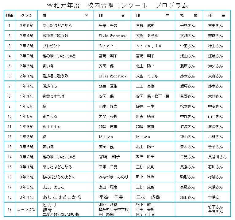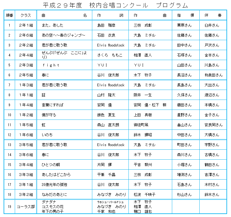 期末テスト終了後の限られた練習時間での準備でしたが、どのクラスも協力し合い、爽やかな心に響く演奏を届けてくれました。