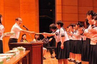 7月19日(金)午後、栃木市文化会館にて、校内合唱コンクールを開催しました。生徒たちはこの1ヶ月、長梅雨の曇り空を吹き払うかのように、朝夕さわやかな歌声を校内に響かせてきました。当日は各クラスが次々にステージに立ち、練習の成果を発揮して息の合った見事な演奏を披露しました。