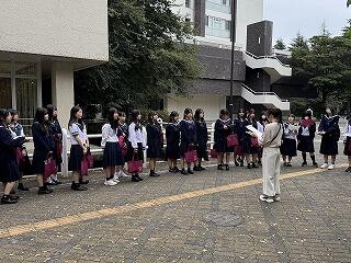 事前指導の段階から、生徒たちは研修への期待に胸をふくらませていた。当日は朝6時50分の集合にもかかわらず、早い生徒は6時頃には集合し、意欲的な姿が見られた。各クラスごとに訪問先は異なり、大学では模擬講義や施設見学、企業では業務内容の説明や社員の方からのお話を伺うなど、貴重な学びの機会となった。事後アンケートでも、生徒からは前向きな感想が多く寄せられ、充実した有意義な研修となったことがうかがえた。