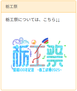 栃工祭(学校祭)を令和7年11月8日(土)9:30~15:00に開催いたします。