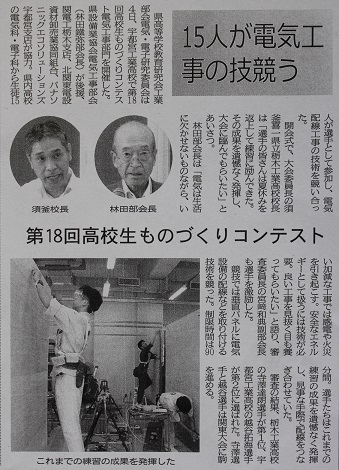 新聞では電子回路、電気工事、木材加工、測量の4部門でしたが、機械加工部門もありますので、再度ご報告いたします。