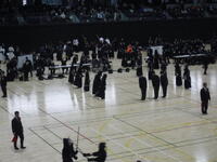 参加者全員で基本稽古を行ったあと、団体形式での試合を2つの試合場で行い、多くの選手と剣を交えることができました。ありがとうございました。