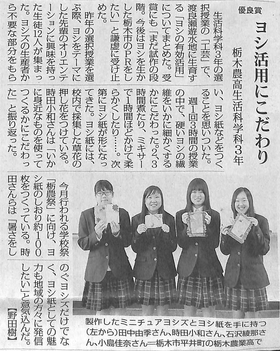 生活科学科の3年生が「ヨシの有効活用」についてまとめたものが優良賞を受賞しています。