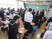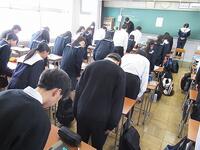 放送部による放送後復唱する形でお辞儀と挨拶の練習風景
