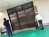 体育館通路のくもの巣取り