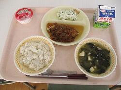 麦ご飯 みそ汁 あじの南蛮漬け 大根サラダ とちおとめゼリー 牛乳