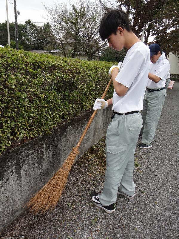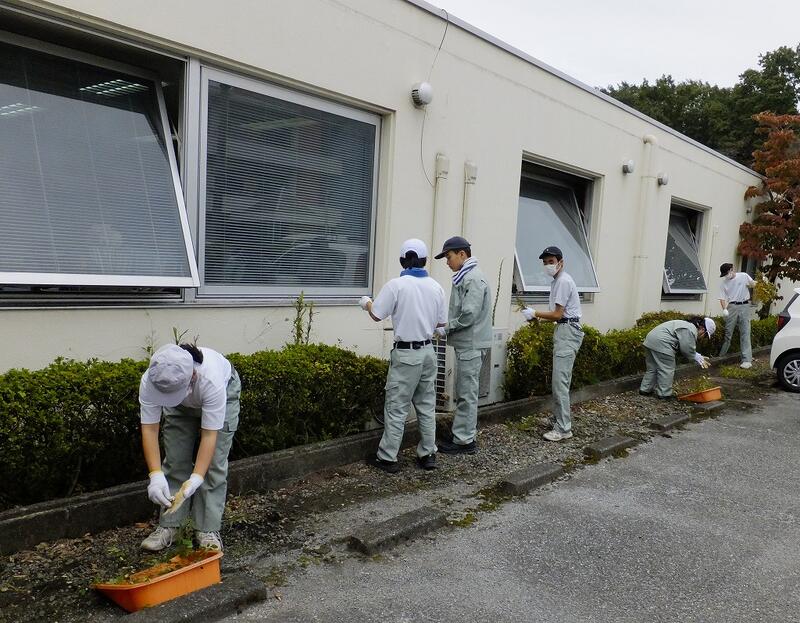 10月11日(木)に、学校近くの特別養護老人ホーム敬祥苑にて除草作業等を行いました。