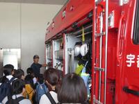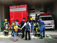 消防車や救急車、施設内の見学をしたり、防火着の着用体験をしたりしました。