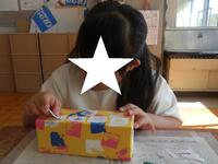 牛乳パックを画用紙で包み、タイヤを付けたり、画用紙の窓を付けたりしました。
