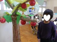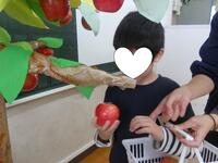 模擬りんごの木でりんご狩り体験をしたり、本物のりんごを試食したりして、秋を感じることができました。