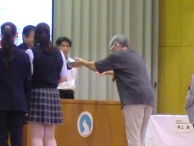 最優秀賞に「エランティス」を発表したY.Hさん、優秀賞に「自分の意志にまっすぐ向き合う」を発表したS.Mさん、優良賞に「五十三歳、私の高校生活」を発表したI.Mさんが選ばれました。