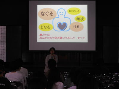 今年は「『デートDV』ってなに?~尊重しあう二人の関係のために~」と題し、「認定NPO法人ウイメンズハウスとちぎ」の丸山文子様から「デートDV」などの性暴力について分かりやすくお話ししていただきました。