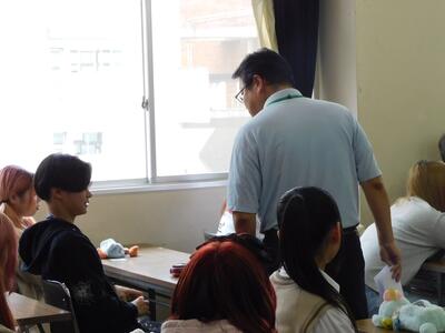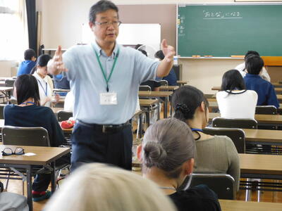 4時間目は、教頭先生より「多様的な見方をすることの大切さ」についてのお話しがありました。3つしかないリンゴを5人で分ける方法を考えました。生徒からは、「アップルパイなどの料理にして5人分を作る」、「リンゴを捨ててしまう」、「じゃんけんする」など様々な意見が出てきました。多様的な見方ができれば、新しい考えや方法が見つかり、停滞を打破することができると教えていただきました。