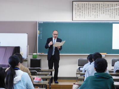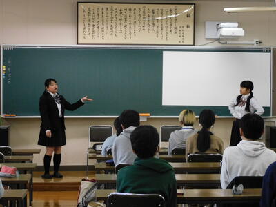 11月25日(火) 3・4時間目、進路講座を開講しました。3時間目の「フューチャーライブ」では、『進路相談~ありがちな進路の勘違い~』 と『安易なフリーター選択、こんなところにデメリット』の内容で、株式会社ライセンスアカデミーの講師の方々より、寸劇形式で講演をしていただきました。楽しく、それでいて分かりやすい内容で、集中して鑑賞することができました。
