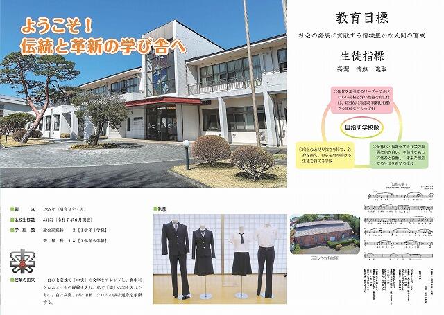 美しい校庭と調和した校舎の中で、生徒は「勉強プラスワン」をスローガンに、学習はもとより文化・スポーツ活動などに意欲的に取り組んでおり、学校が一丸となって一人一人の確かな学力と豊かな人間性の育成、進路実現のためにきめ細かい教育を行っています。