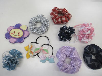 あまり布を活用してシュシュやリボン、ミニきんちゃくなどを作って、販売します。