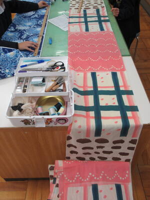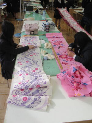 服飾デザイン科1年7組では白楊祭に向けて小物製作をしています。